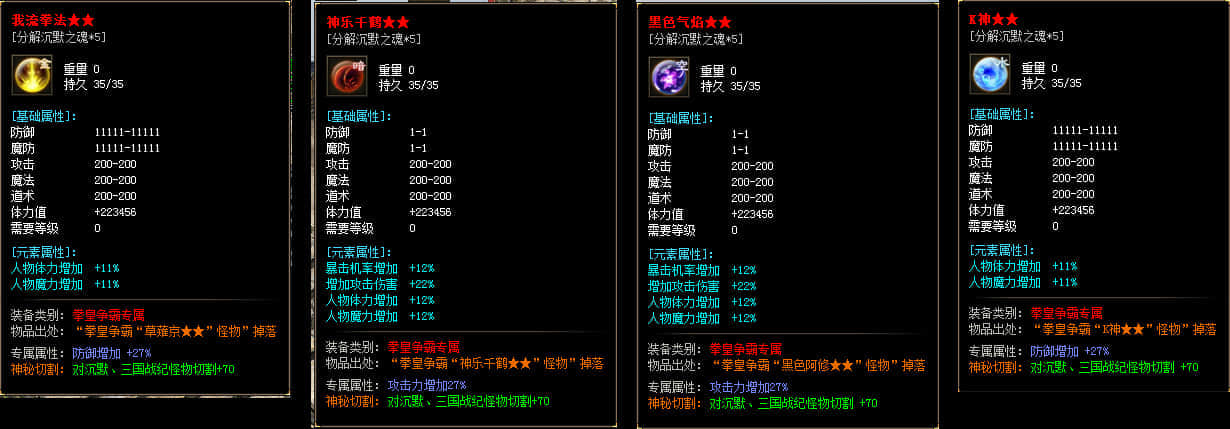 本服套装70套 散件专属3000多套 各种神装眼花缭乱 长期探索